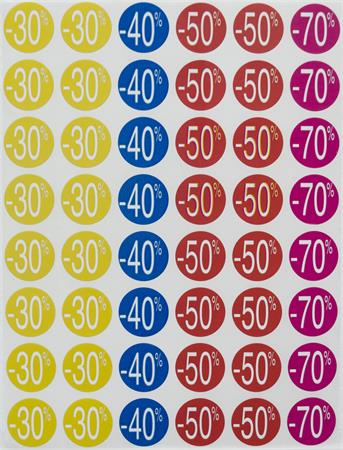 Etikett, árengedmény, 24 mm, kör, színes, APLI, 240 etikett/csomag, -30-70%