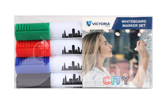 Táblamarker készlet, 1-3 mm, kúpos, VICTORIA VISUAL "City", 4 különböző szín