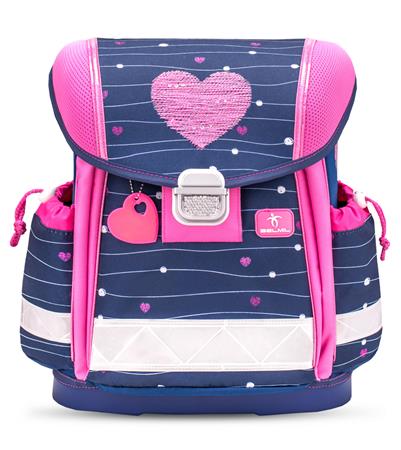 Iskolatáska, fémcsat, BELMIL "Classy Simple Hearts", rózsaszín szív